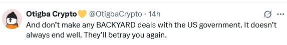 اور امریکی حکومت کے ساتھ کوئی خفیہ معاہدہ نہ کریں۔ یہ (اس طرح کے معاہدے) ہمیشہ ہی کسی اچھے انجام پر ختم نہیں ہوتے۔ وہ آپ کو پھر سے دھوکہ دیں گے!